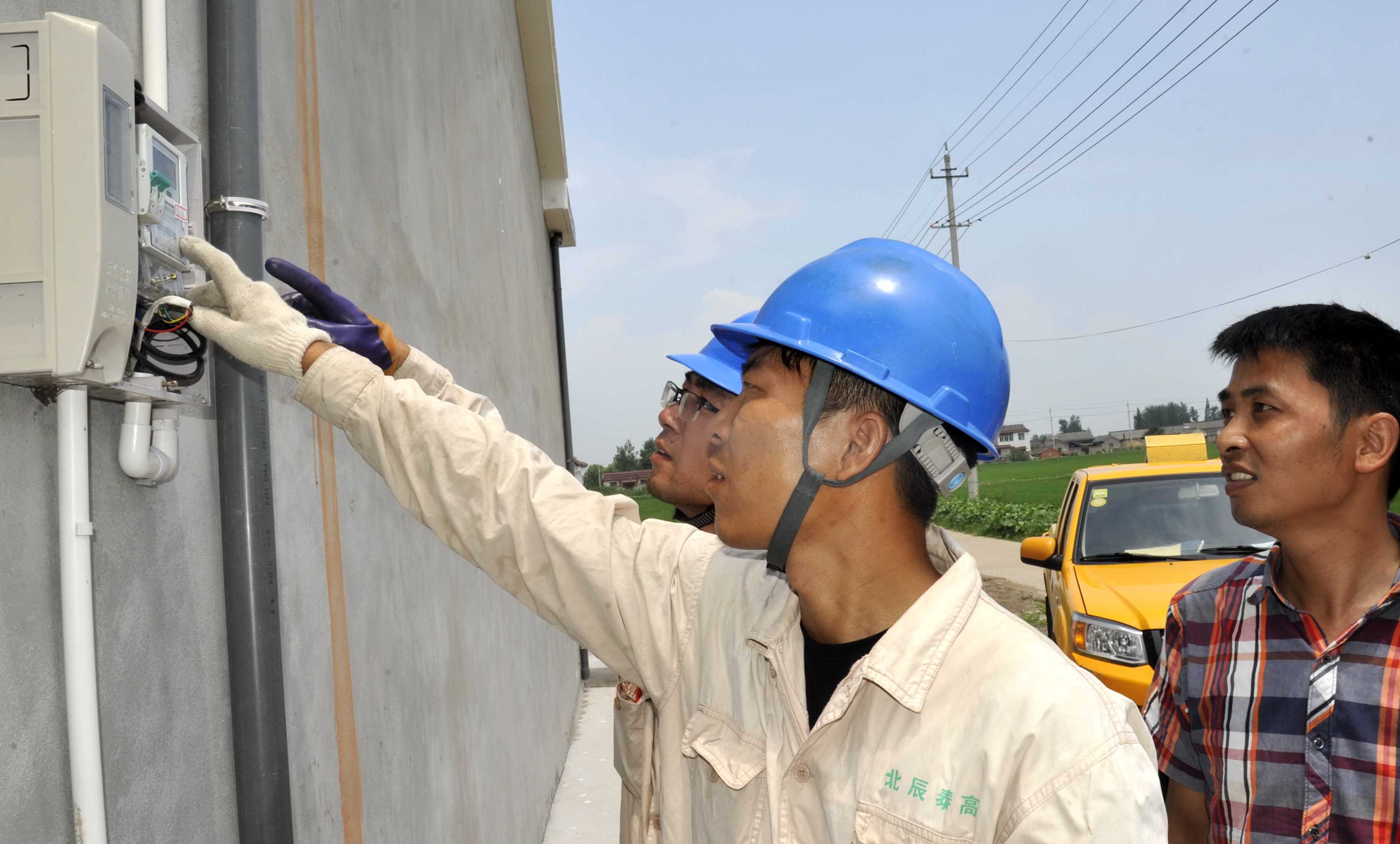 7月24日中午,江蘇高郵室外地表溫度達40℃ ,高郵市供電公司組織施工人員在龍虬鎮大樹村3號配電臺區帶電調整低壓接戶線以平衡用電負荷,并現場測試表計進出線電壓,確保村民在高溫時期用上優質電能。高郵市供電公司組織施工人員在龍虬鎮大樹村3號配電臺區帶電調整低壓接戶線以平衡用電負荷,并現場測試表計進出線電壓,確保村民在高溫時期用上優質電能。